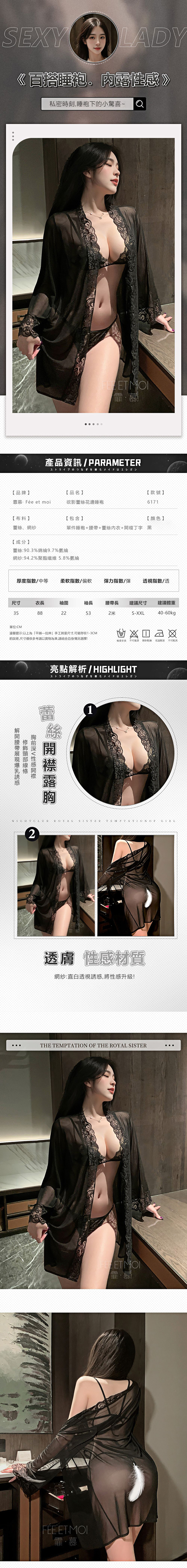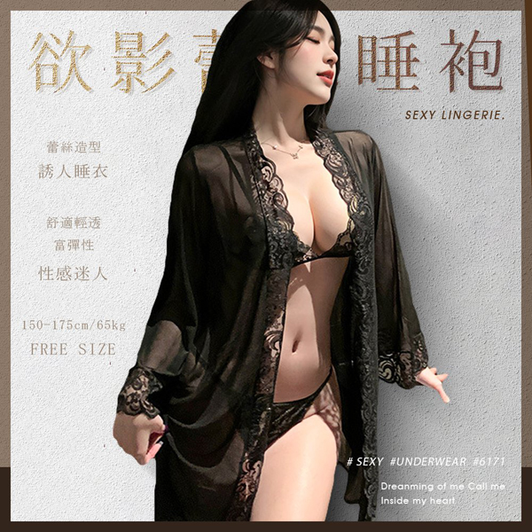 【商品名稱】 欲影蕾絲花邊睡袍+內衣褲6171