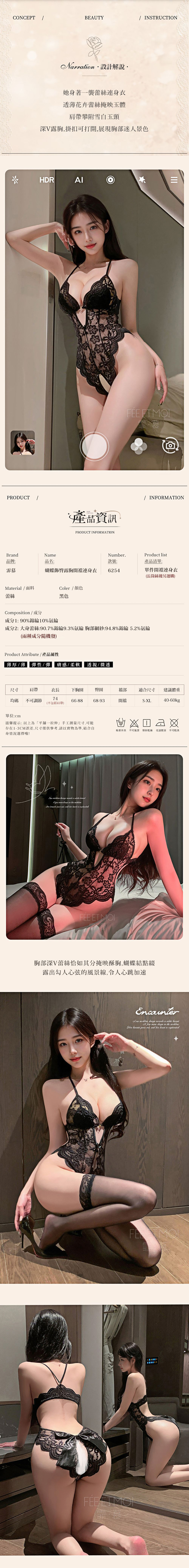 【商品名稱】 情夢邀約開襠連身衣6254-黑