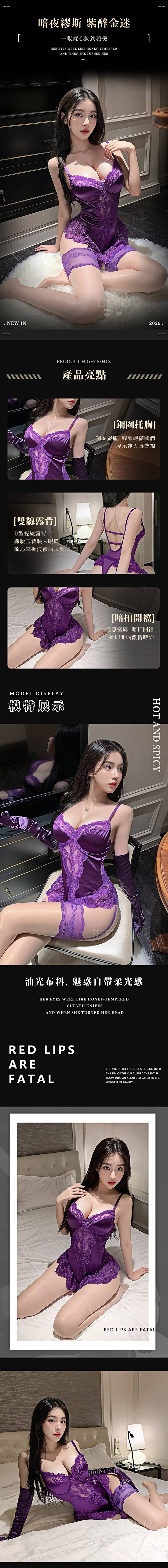 【商品簡介】 材質:涤油光+蕾絲 內容:開襠連身衣x1 顏色:紫 總重:約130g 尺寸:FREE SIZE,適身高150-175cm 適體重70kg以下.....