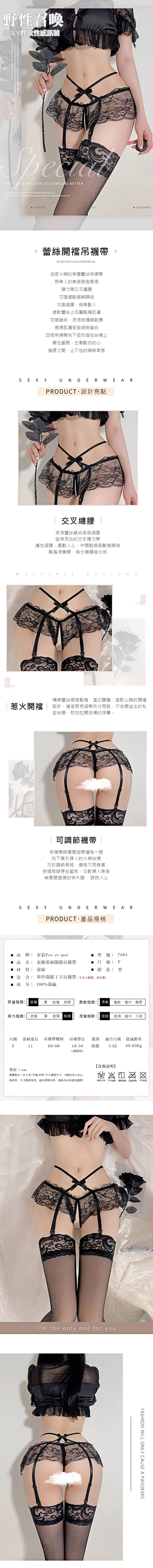 【商品名稱】 惹火蕾絲開襠吊襪帶7604-黑