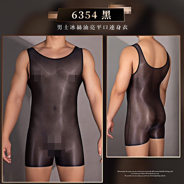 【商品名稱】 男士冰絲油亮連身平口6354-黑