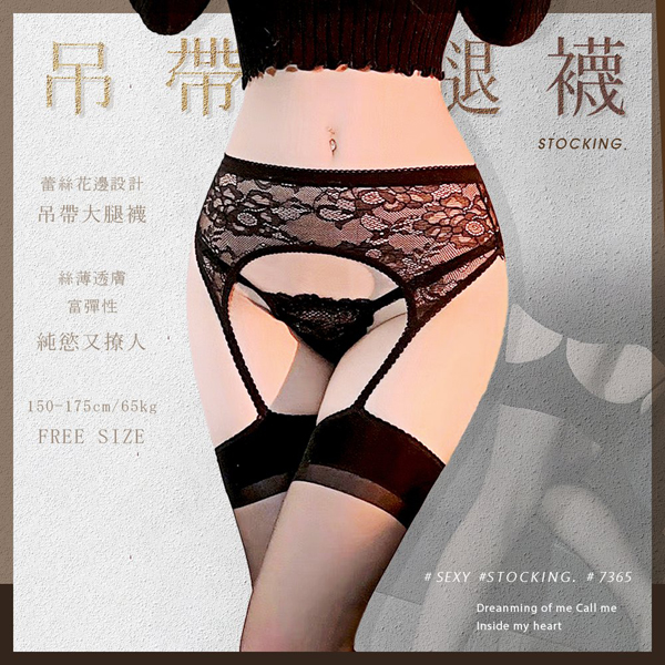 【商品名稱】 性感蕾絲吊帶連大腿襪7365-黑