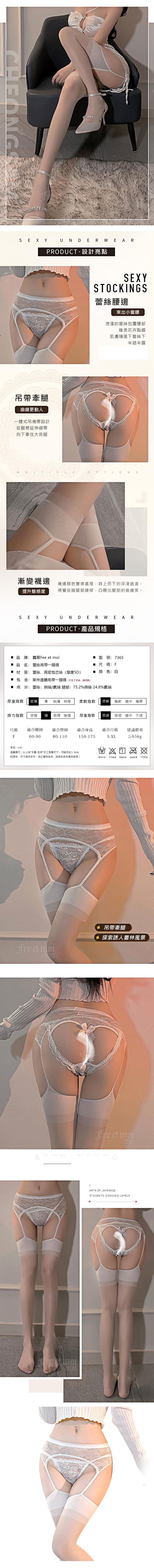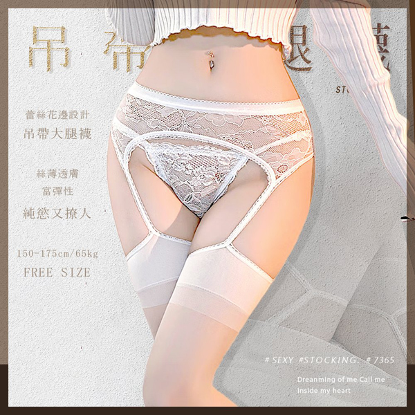 【商品名稱】 性感蕾絲吊帶連大腿襪7365-白