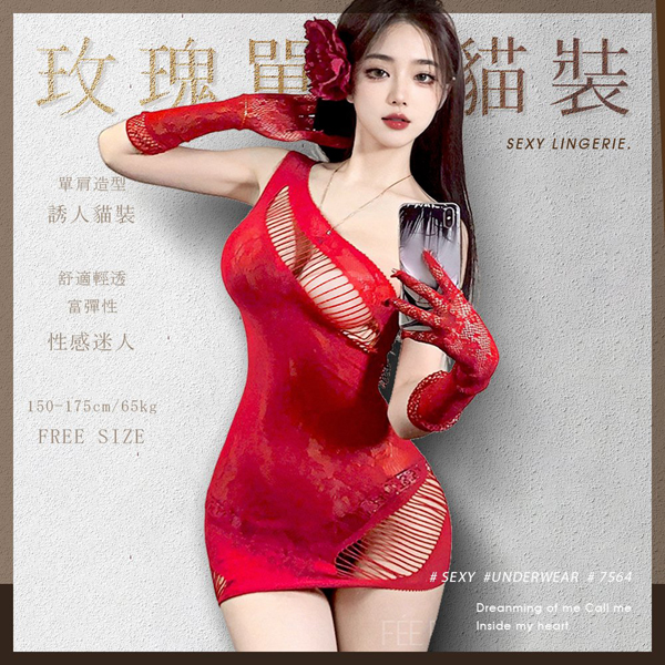 【商品名稱】 熱烈玫瑰單肩性感貓裝7564