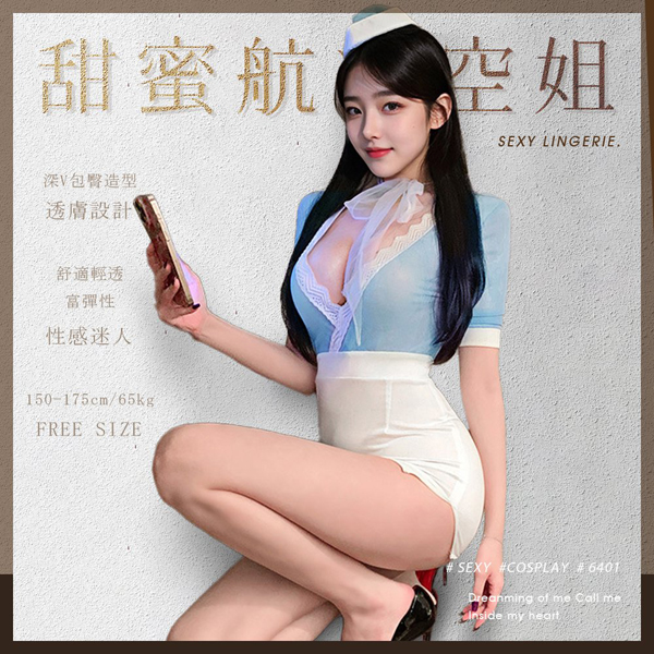 【商品名稱】 甜蜜航線深V包臀空姐服-6401