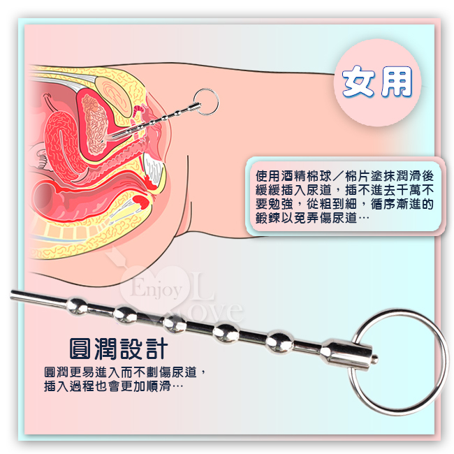 8、因為一端的金屬帽扣有脈衝電擊功能,所以你(妳)可在使用馬演尿道棒前中後,同時刺激身體各個敏感點(線長有100公分)。