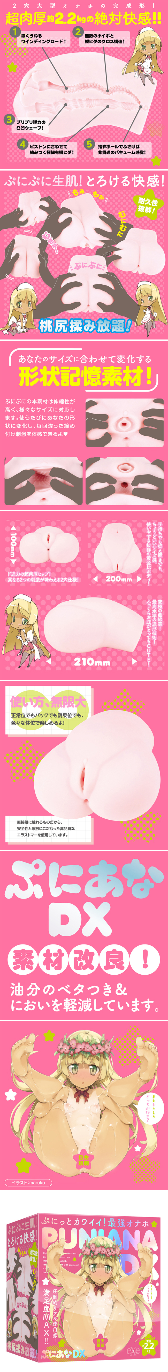Q彈又可愛!最強自慰套『普妮安娜DX』的素材變得更好了。減少油分的黏答答感&減輕氣味。壓倒性的逼真使用感,滿足度MAX!重量厚實約為2.2kg!黃金比例身材,恰到好處的尺寸,無論是手持還是固定都方便使用!極致的曲線美是造型技術的最高境界!微凸的肚子超級可愛!超級有氣勢的超肉厚臀為能讓您享受兩種不同的刺激的雙穴規格!使用方法無限可能!無論是正常體位、後背式還是騎乘式,各種體位都能享受!由於會與肌膚直接接觸,因此特別注重安全性和觸感而使用了高品質的彈性體。超耐用的蜜桃臀,愛怎麼揉就怎麼揉!Q彈的皮膚,讓人融化的快感!長年備受好評,講究的內部結構依然存在於!採用會配合您的尺寸而變化的形狀記憶素材!QQ彈彈的本素材極有彈性,可配合各種尺寸。每次使用都會配合您的形狀,每次都能體驗不用的緊縮感!雙穴大型自慰套的完成體在此誕生!包裝插畫師:maruku 審查編號:2202546