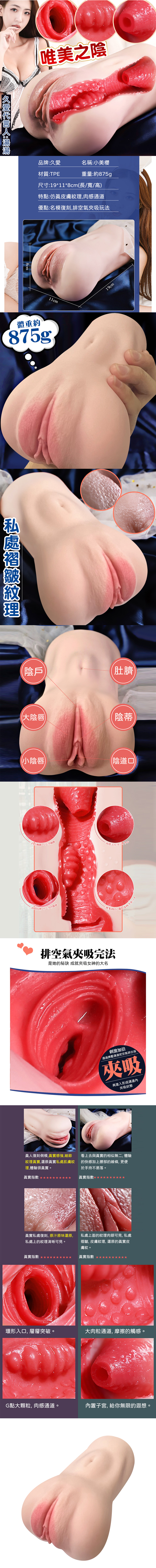 【商品名稱】 小美櫻青春款環紋肉粒凸點子宮復刻倒模男用自慰套