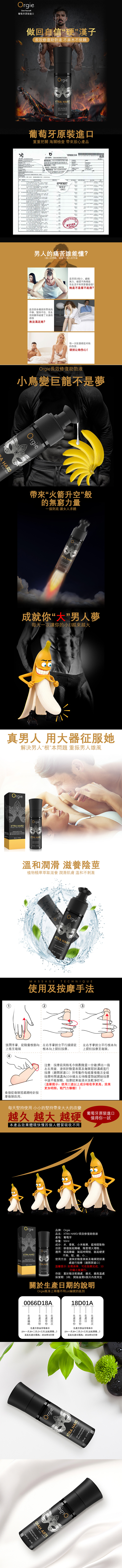 【商品名稱】 葡萄牙Orgie XTRA HARD 男用長效修復助勃液(50ml)