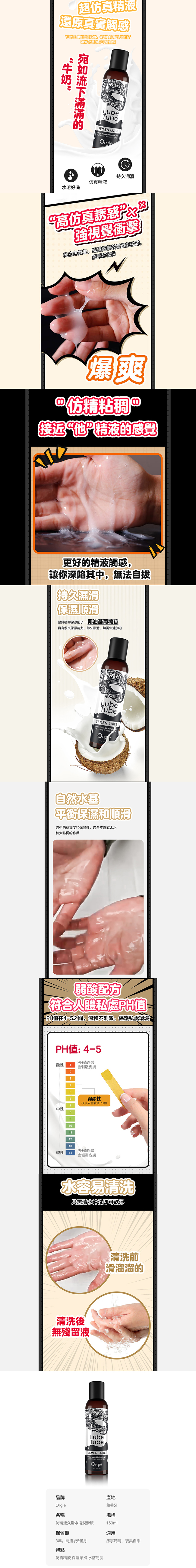 【商品名稱】 葡萄牙Orgie 仿真男性精液 弱酸潤滑液 150ml