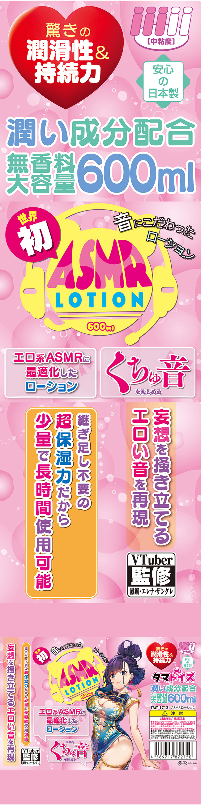 【商品簡介】 潤滑液經過優化,專為滿足色情ASMR愛好者而設計的潤滑液,再現刺激官能和想像的淫蕩聲浪! 由VTuber「鳳翔」親自監修,呈現令人驚嘆的潤滑性能和持續力,僅需少量使用.....