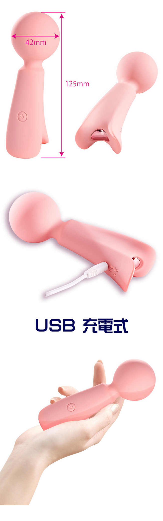 【商品簡介】 種類:一般震動 材質:矽膠+塑料 包裝:PVC盒包裝 電源:USB充電 商品尺寸:全長12.5cm、直徑4.2cm 盒子尺寸:長25cm、寬7.5cm、高5.5cm .....