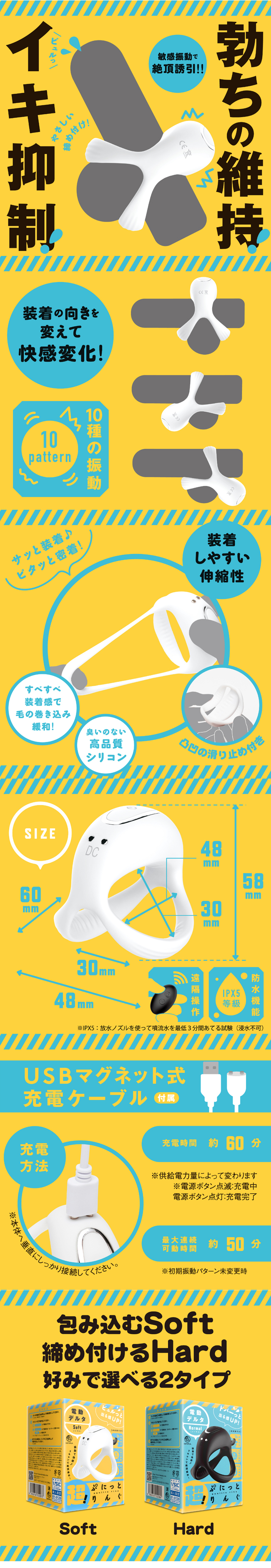 產品內置強勁的馬達,設有十段變頻,而且持久性強,只需充電一次使能享受最長五十分鐘的震動效果!而且帶有 IPX5 防水功能,在浴室玩樂也不用擔心,方便易用!