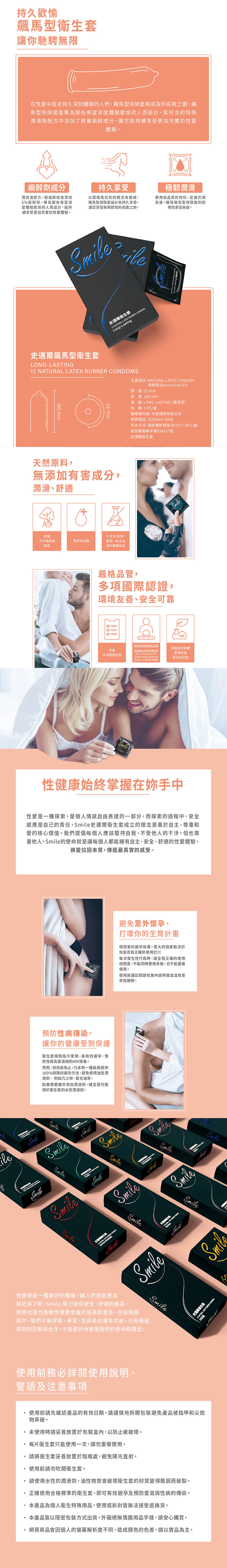 【商品名稱】 Smile史邁爾 飆馬型保險套衛生套(含麻醉劑)12入