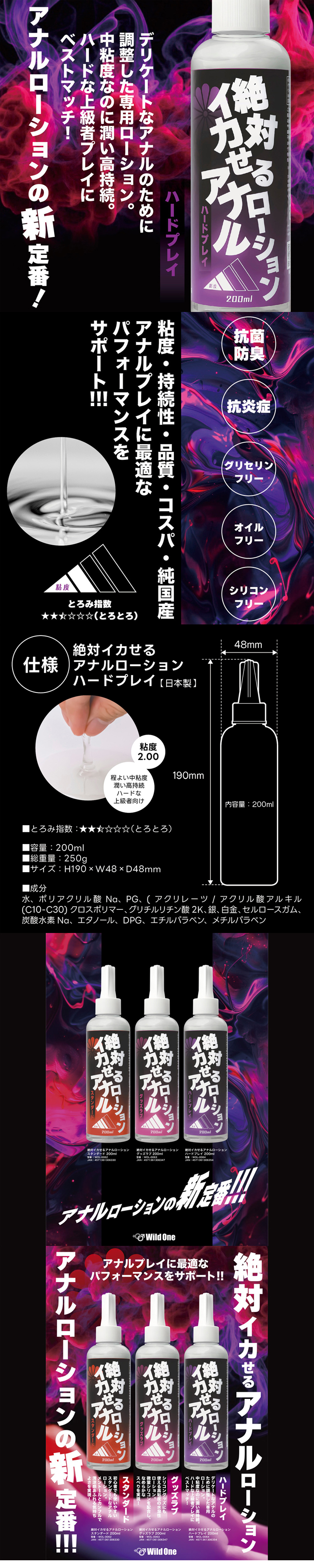 【商品名稱】 日本Wild One 絕對高潮後庭專用中黏度持續性潤滑液200ml