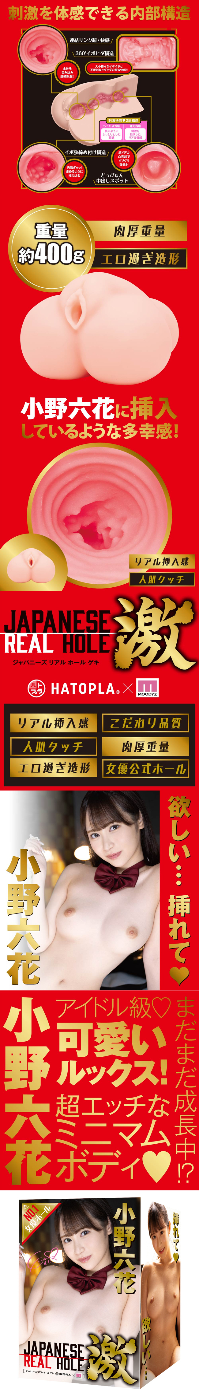 【商品簡介】 .超調皮的極小身材_仍在成長! .盡情享受小野六花的精緻作品! .真實活塞感×色情造型︱REAL HOLE的真穴設計 .快來體驗小野六花厚重而刺激的蜜穴 .附贈潤滑液.....