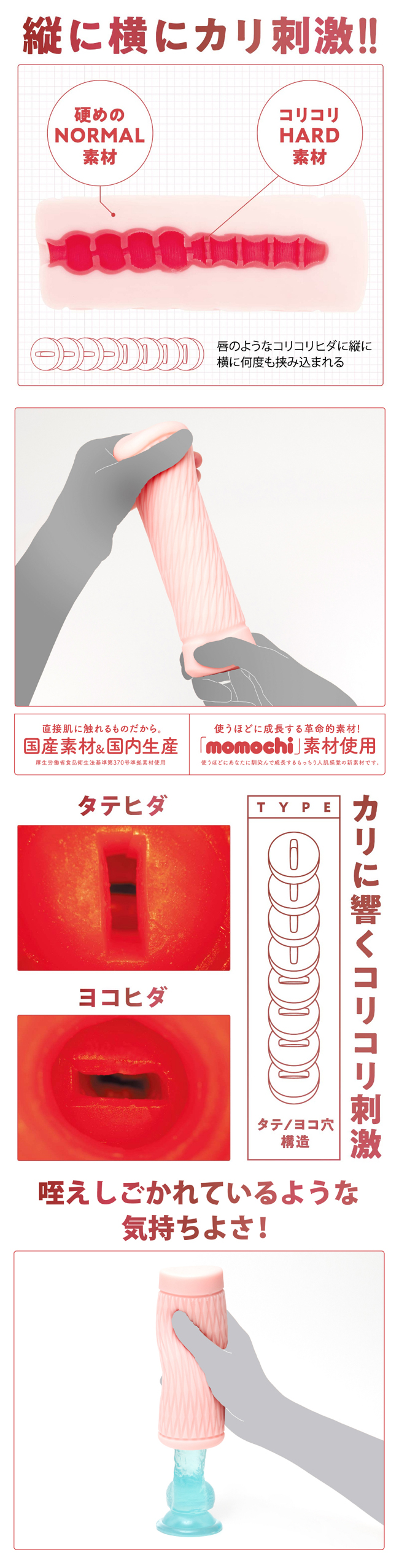 多次縱向、橫向捏住伸展的尖端,即可享受HARD的脆脆高刺激,具有更穿透的刺激和更強的勾掛刺激。檢驗編號:2404716