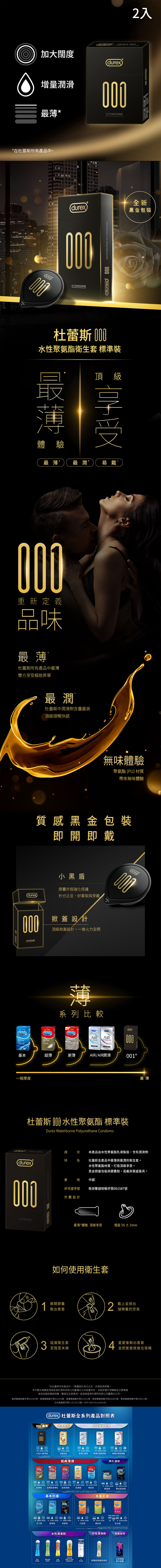 【商品名稱】 【杜蕾斯Durex】001水性聚氨酯標準裝保險套衛生套安全套避孕套2入