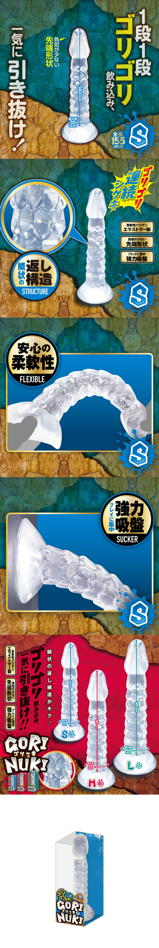 【商品名稱】 日本A-one鱗片狀透明款逼真按摩棒(S號)