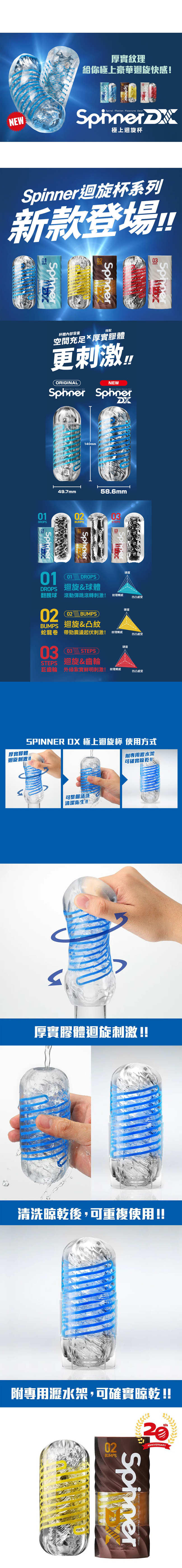 【商品簡介】 迴轉旋吸+厚實紋理,豪華新快感! TENGA SPINNER DX 極上迴旋杯 登場! 結合迴旋體設計與厚實紋理,帶來更奢華的扭轉刺激。.....