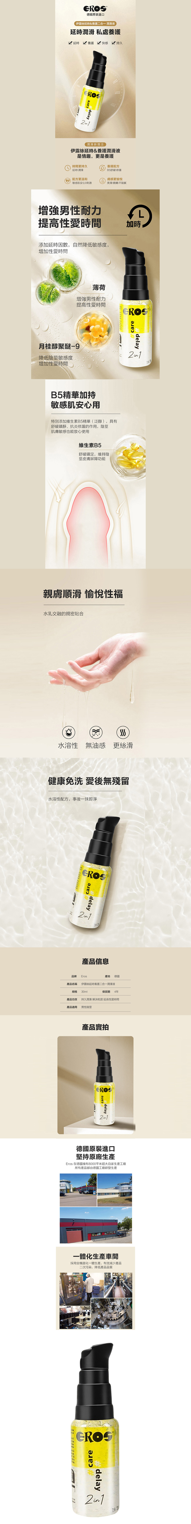 【商品名稱】 德國Eros 敏感二合一延時養護潤滑凝膠30ml