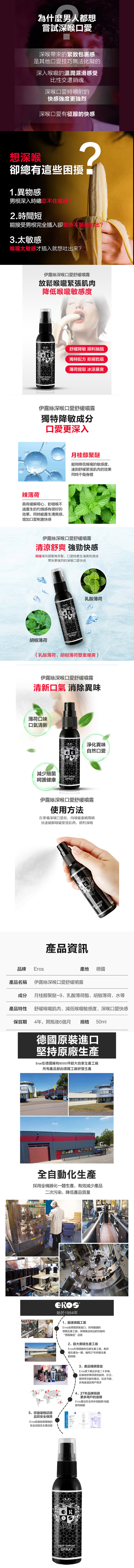 【商品名稱】 德國Eros 頂級深喉口愛口交專用放肆抽插舒緩噴霧50ml