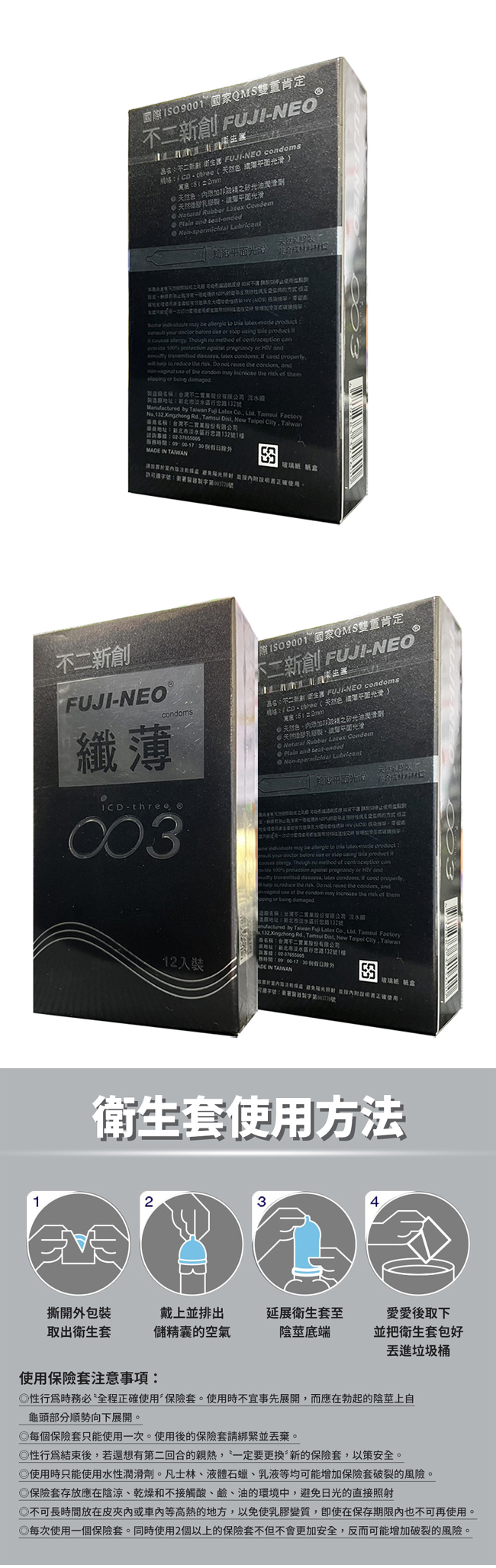 【商品名稱】 不二新創 纖薄003(黑色包裝)保險套衛生套12入