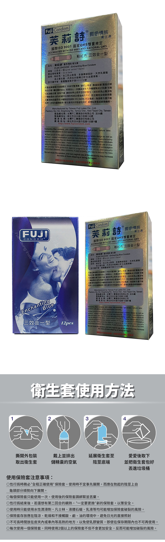 【商品名稱】 芙莉詩 藍色情挑三效合一型保險套衛生套12入
