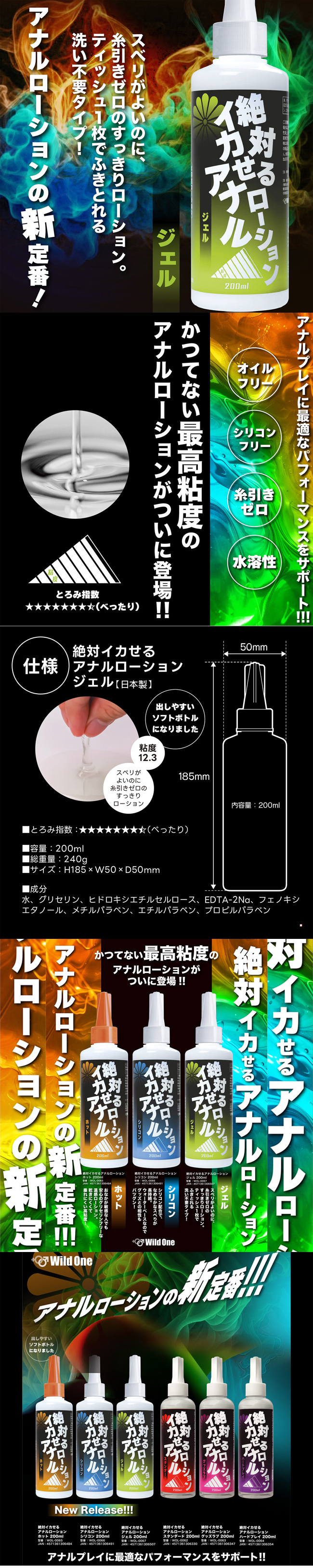 【商品名稱】 日本Wild One 絕對高潮第二彈後庭專用清爽凝膠型潤滑液200ml 水溶性潤滑液