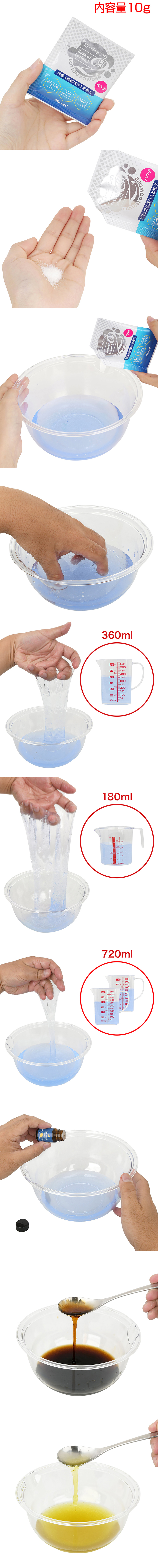 當然,它仍然是通過將其溶解在水或熱水中製成的。使用標準黏度的潤滑液。並且,如果添加香精油,則可以添加自己喜歡的氣味。