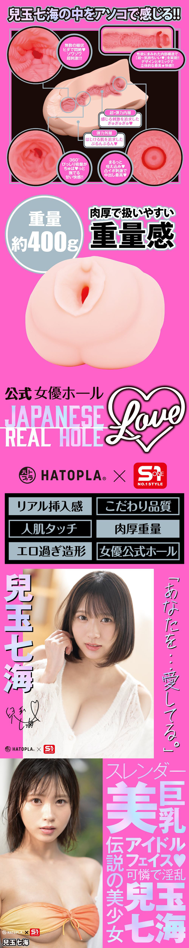 AV女優官方飛機杯「JAPANESE REAL HOLE LOVE_」既可愛又淫亂! !女團臉的閃電身材巨乳!盡情享受兒玉七海的私密部位!重現了宛如直接插入充滿性慾設計和機關的『追求柔嫩肌感的黏滑柔軟外層』『追求刺激感的彈潤Q彈內層』體驗真實的SEX過程! !與憧憬的女優盡情纏綿到滿足為止,最後體驗內射的爽~! !