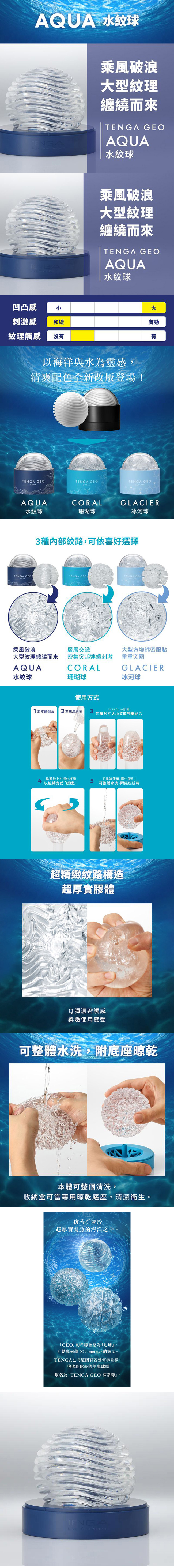 【商品名稱】 日本TENGA GEO 探索球[AQUA/水紋球]重複使用自慰杯