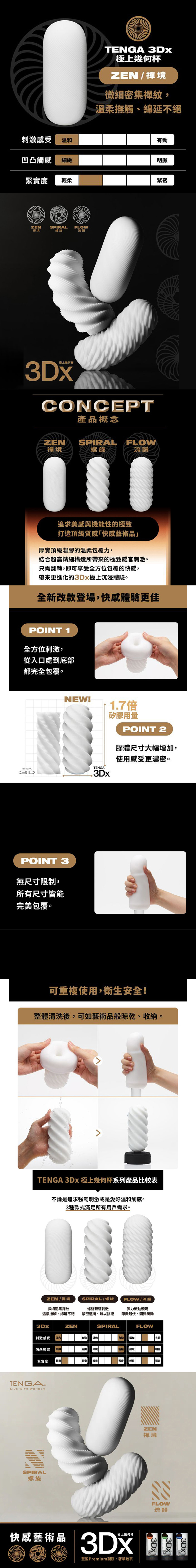 【商品簡介】 隆重介紹 TENGA 3Dx,完美融合美感與功能的頂級「愉悅之物」。 它融合了濃稠優質凝膠帶來的包裹感和超高精度的精細刺激。.....