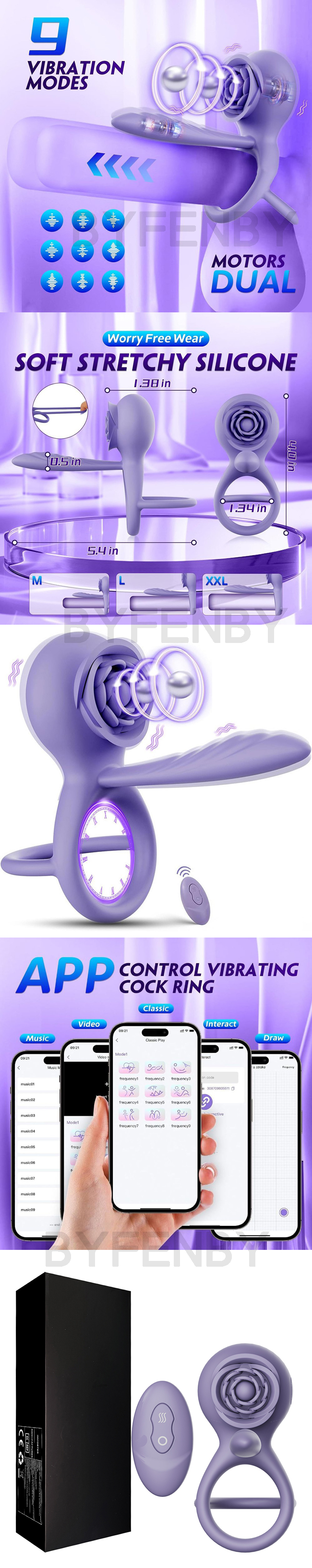 【商品名稱】 玫瑰花智能遙控雙震7頻震動環