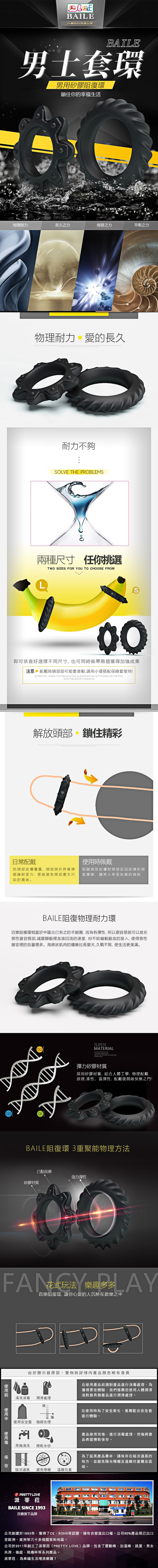 【商品簡介】 用途:男女情趣之用 材質:熱塑性彈性體 規格:穿戴型/2入 淨重:約14g 總重:約32g 尺寸:2環內/外徑分別約為2.3/4.5cm、2.8/4.8cm,厚度約0.8-1cm.....