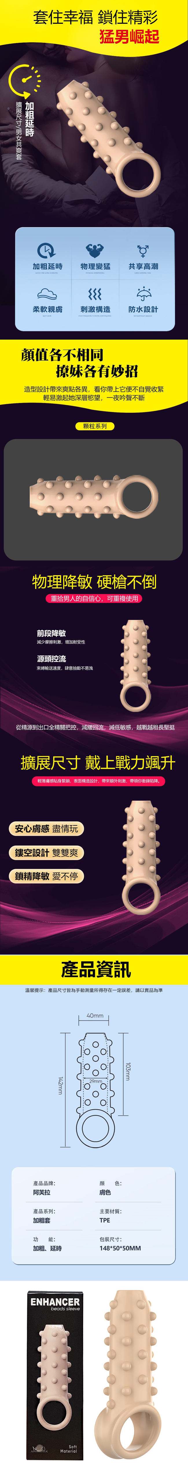 【商品名稱】 阿芙拉猛男崛起加粗顆粒套-膚
