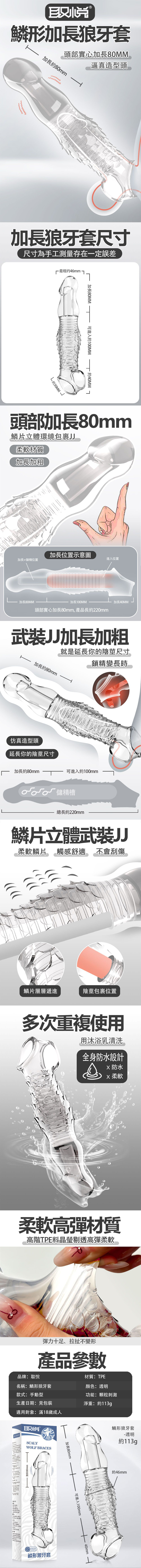【商品名稱】 麟形仿真刺激狼牙套-透明