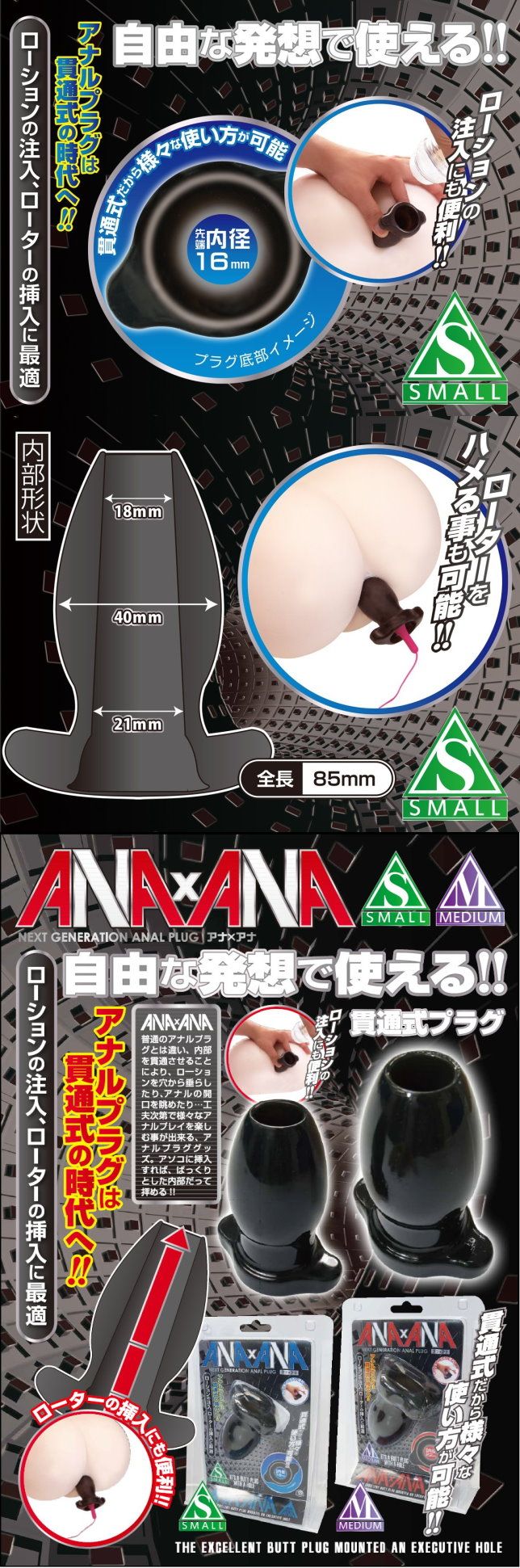 【商品名稱】 日本A-one*ANA×ANA 中空式後庭開發器(黑)-S
