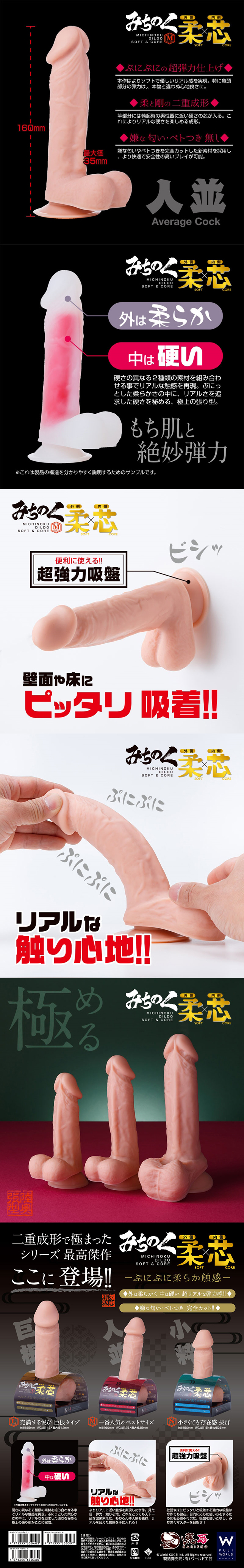 外層(尤其是龜頭)具類似PUNIPINI材質的逼真柔軟度,賦予了逼真的彈性。內部仿造了實際海綿體充血後的硬挺狀態,鬆軟而堅硬,您能十足的感受到真實肉棒的存在!
