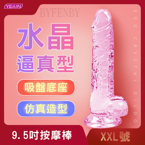 【商品名稱】 9.5吋水晶逼真吸盤按摩棒-XXL