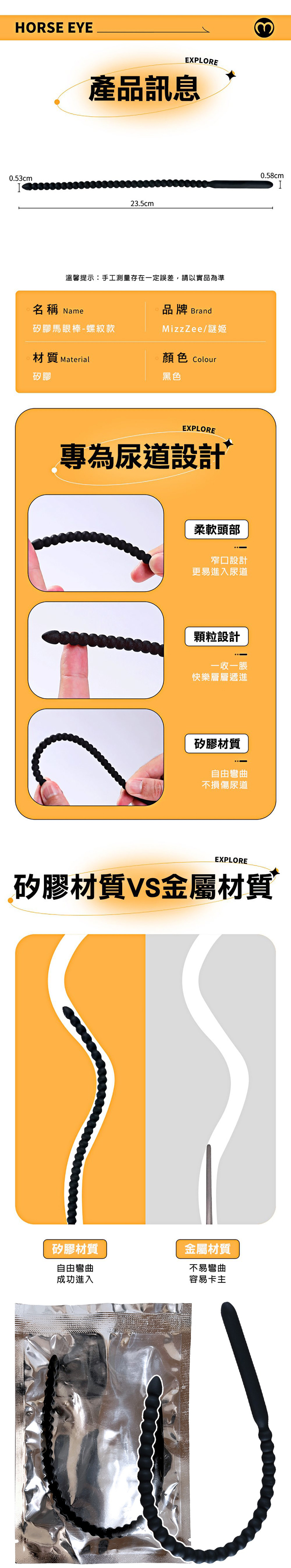 【商品名稱】 謎姬矽膠馬眼棒-螺紋款