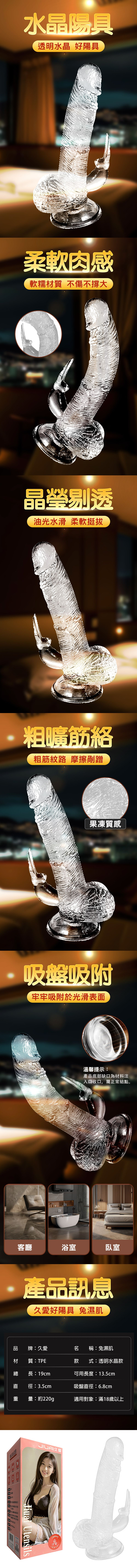 【商品名稱】 兔濕肌水晶感仿真吸盤按摩棒
