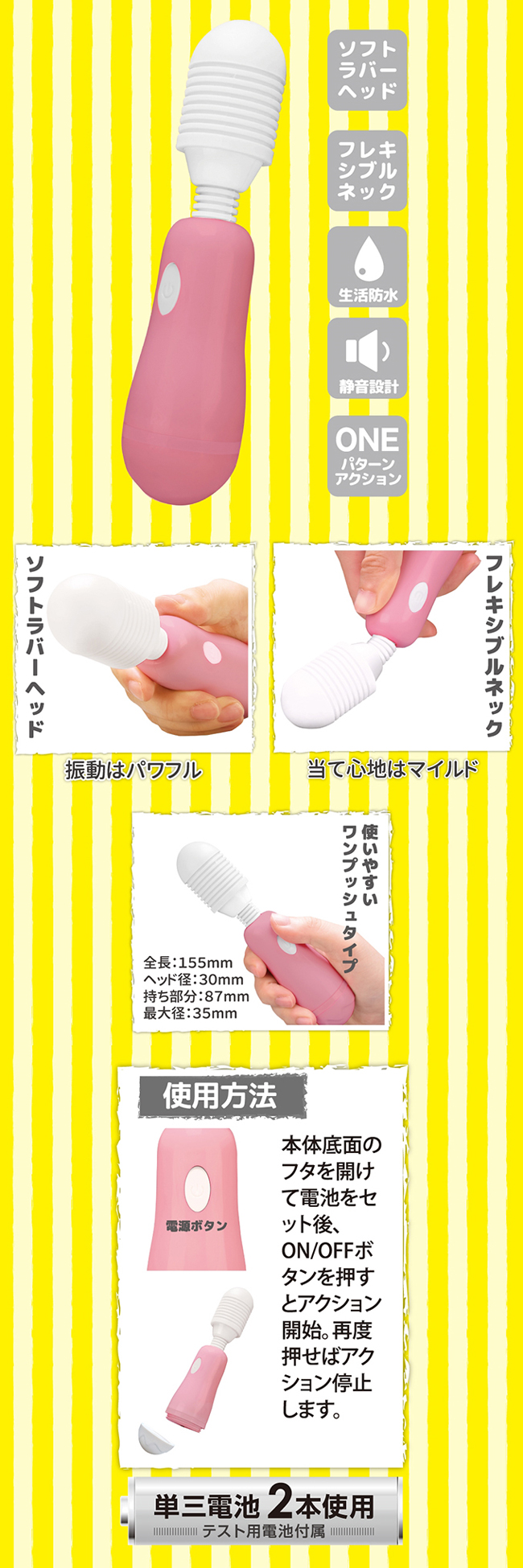 動。配有彈性項頸部和柔軟橡膠頭,靜音設計及防水機能。