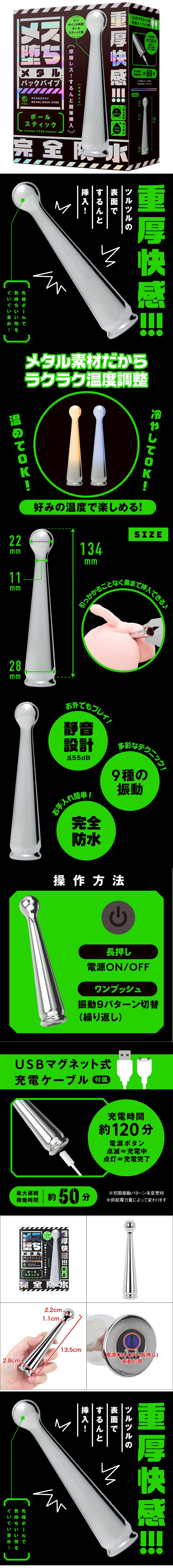 【商品簡介】 金屬帶來的深刻樂趣!易於插入,質地光滑!由於它是完全防水的,所以使用後可以清洗並保持清潔。可以利用尖端的球體,精準刺激舒適部位!享受金屬的清涼質感!享受溫暖又融化的遊戲.....