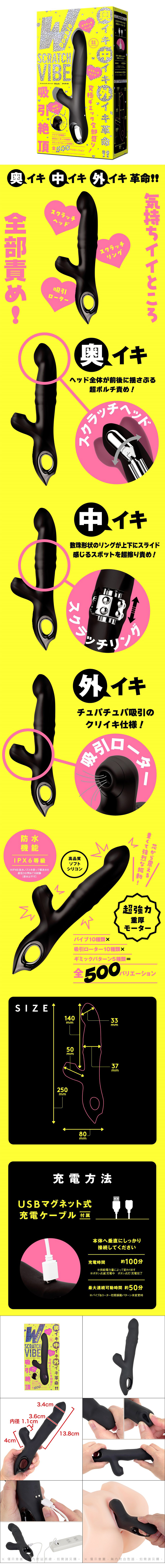 《吸吮高潮 W SCRATCH VIBE[W 搔蹭按摩棒]-黑色-》