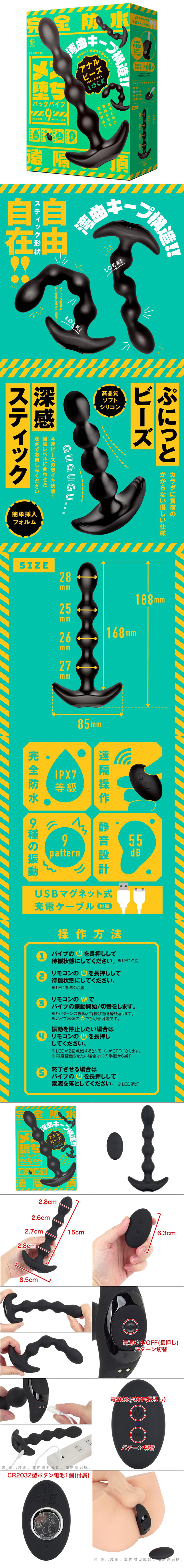【商品名稱】 【日本HATOPLA】雌墜9頻可彎遙控震動後庭拉珠