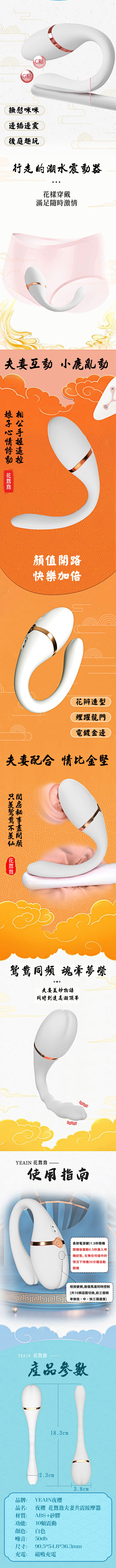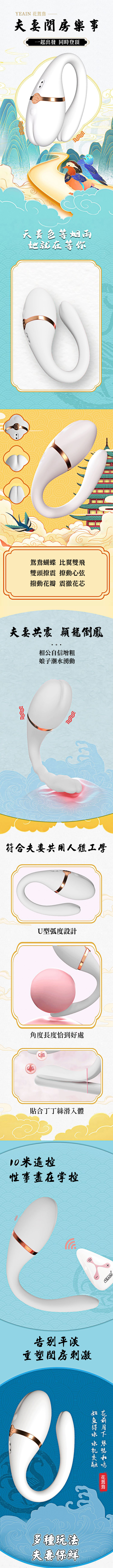 【商品名稱】 花鴛鴦夫妻共享遙控10頻震-白