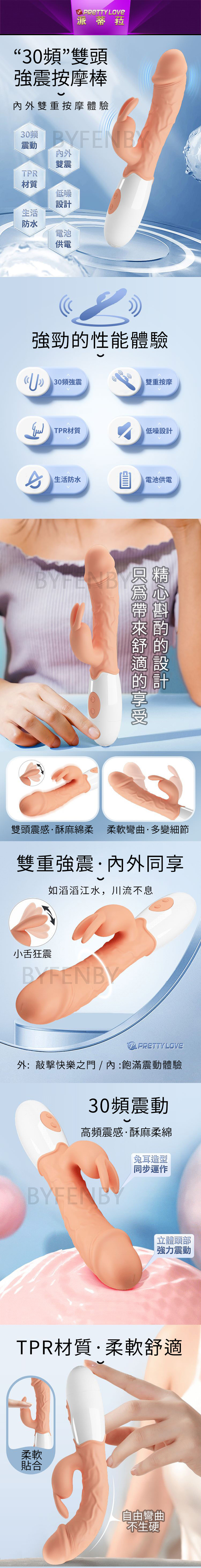 【商品簡介】 雙重強震,內外同享刺激! 兔耳撩撥,給你酥麻綿柔的舒適享受! 30頻雙震動 仿真龜頭 TPR材質 低噪設計.....