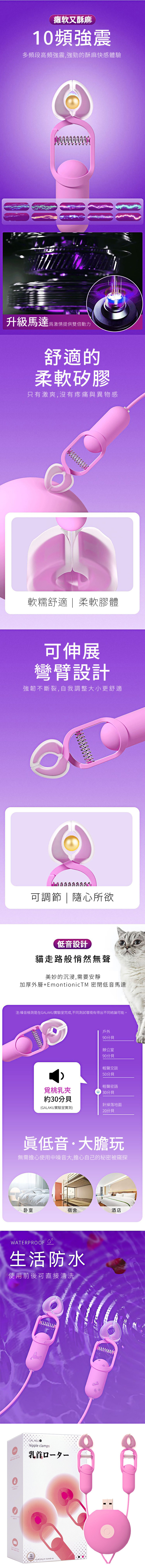 【商品簡介】 .前戲挑逗,瞬間酥麻癱軟! .夾乳刺激像牙齒輕咬,強震激爽心神蕩漾! .10頻強震、高速馬達 .多點刺激快感 .低噪設計 .USB充電.....