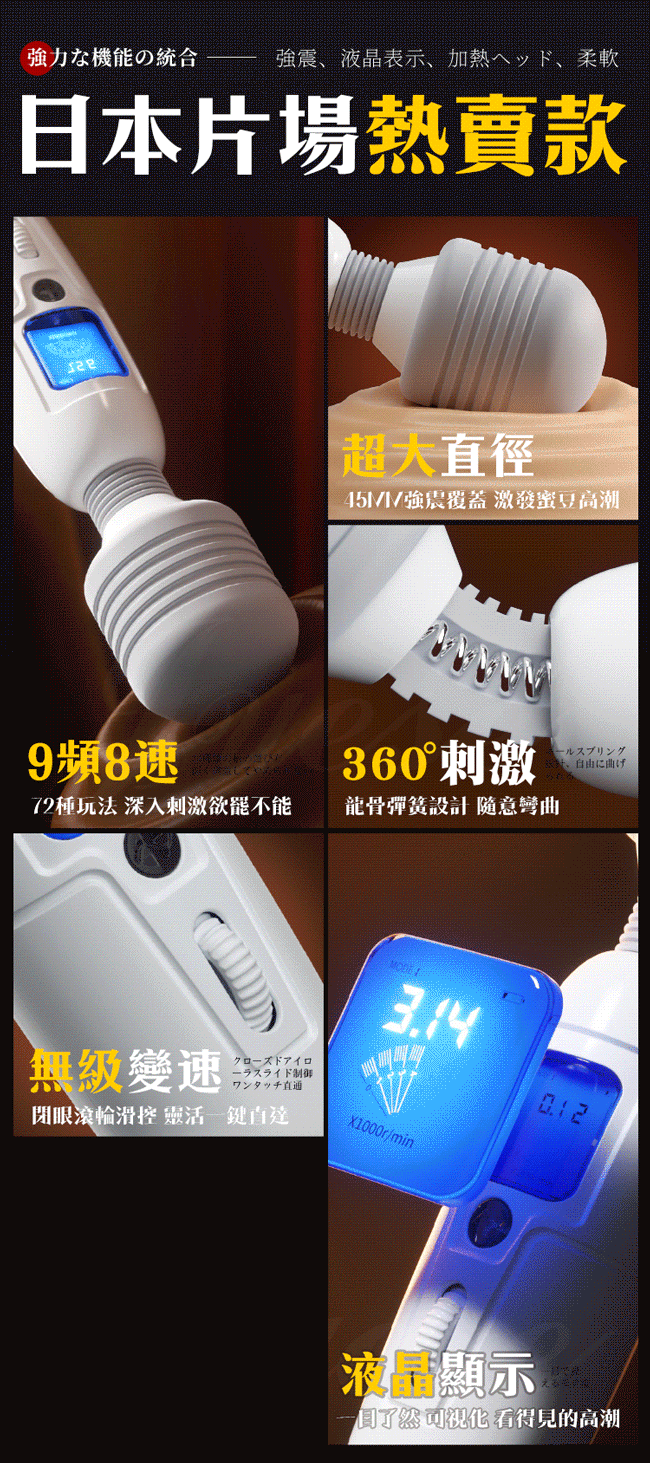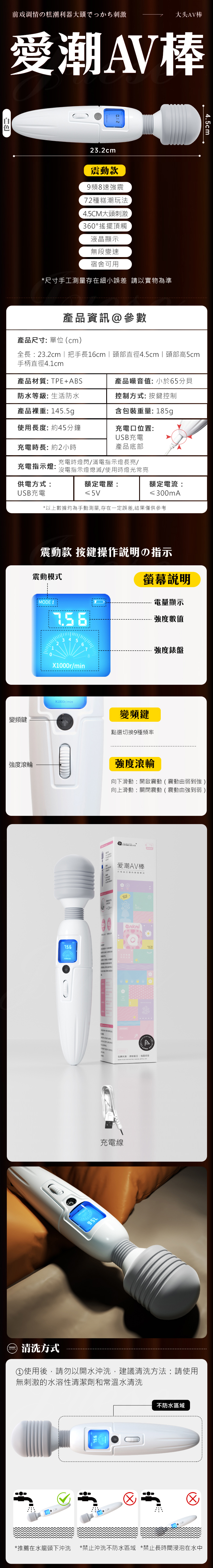 【商品名稱】 愛潮9x8頻液晶AV震動棒-白